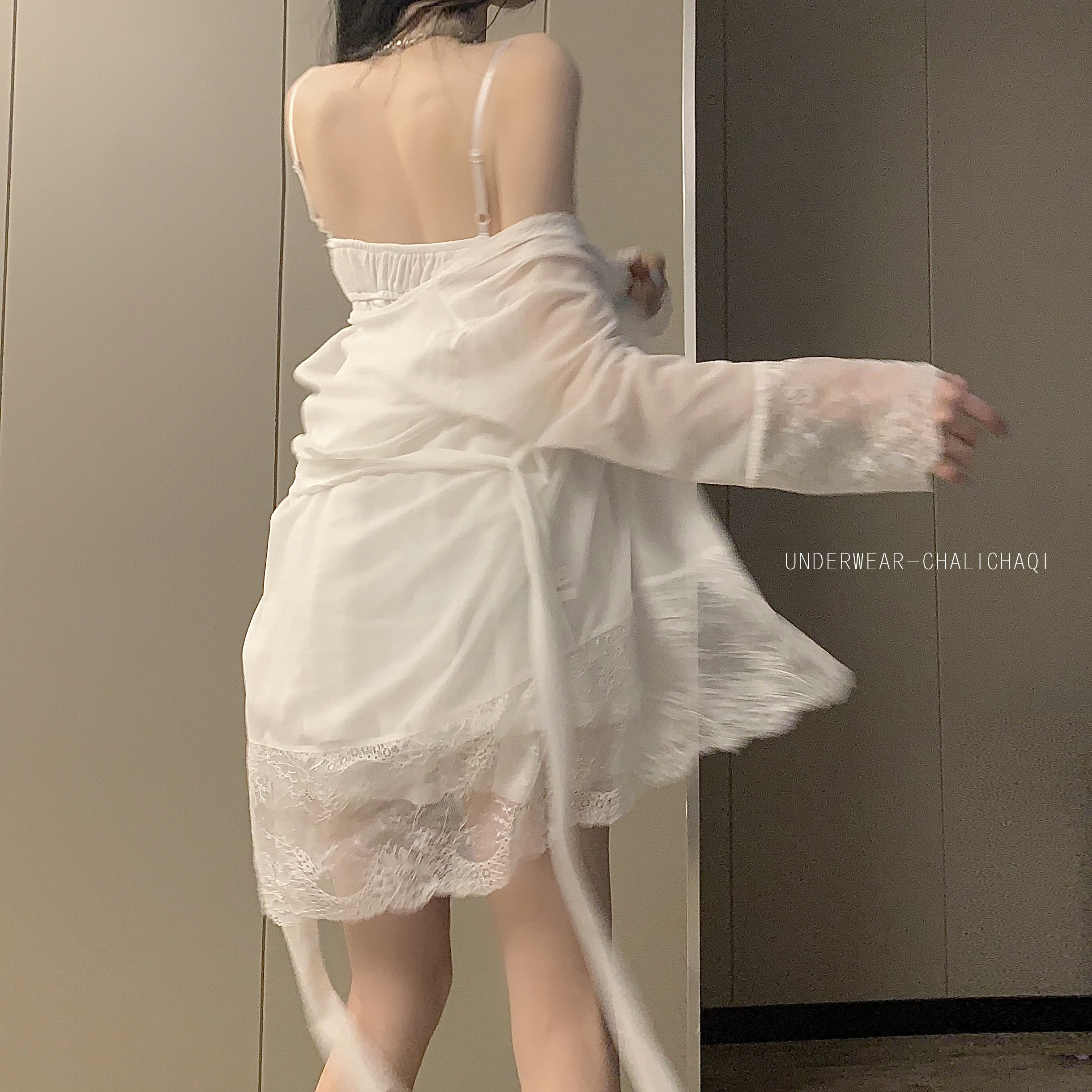 White Fairy Wind Sleepwear Woman Harness Spring Autumn Sexy Lace Pure Cotton With Chest Cushion Home Conserved Two Style Suit Sleeping Dress