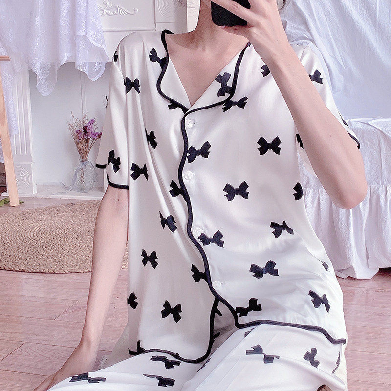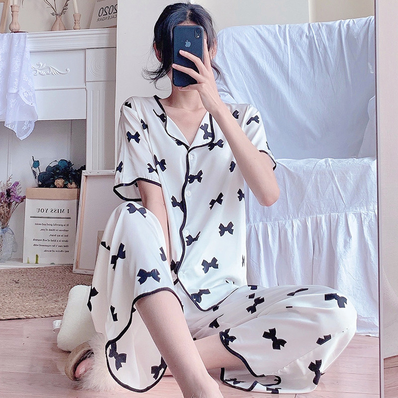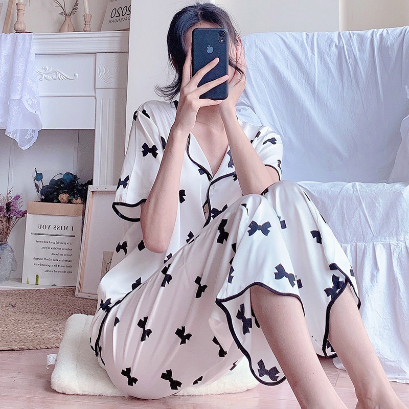 2022 pajamas women's spring and autumn ice silk thin section sexy high-end sense net red popular real silk home clothes summer