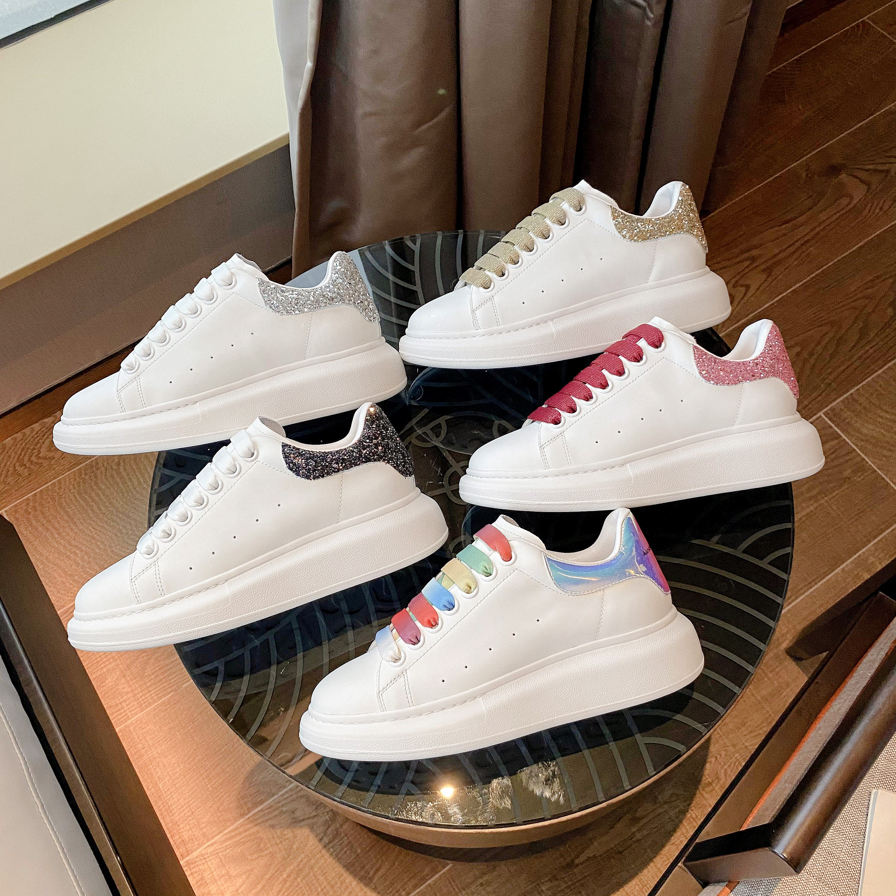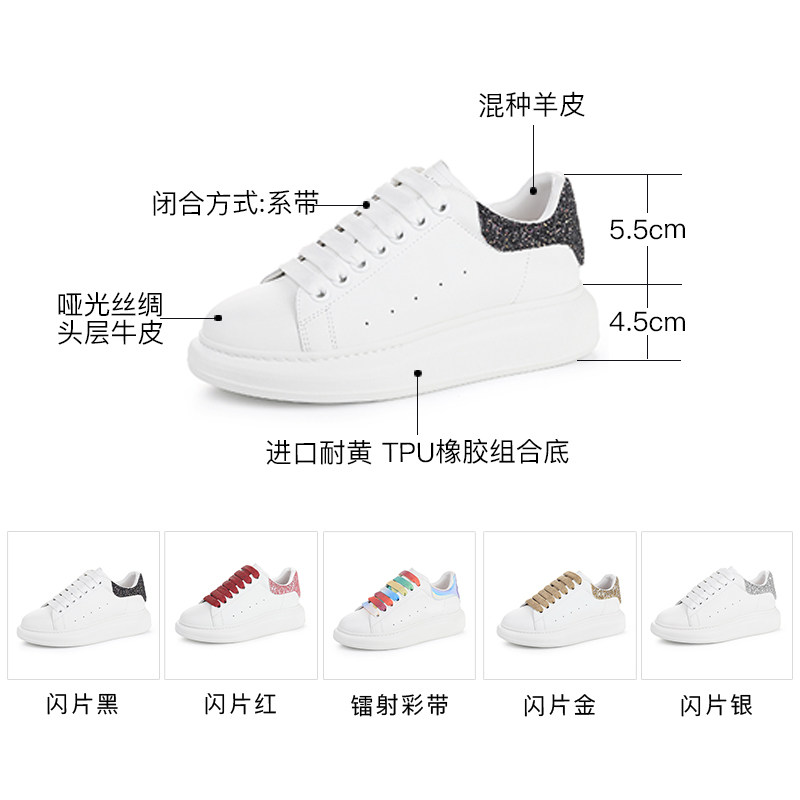 Mckunda Small White Shoes 2021 New Women's Shoes Lace Genuine Leather Pine Pastry Thick Bottom Inner Heightening Couple Mckun Board Shoes
