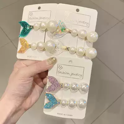 Temperament Korean ins Wind Net red 2021 new hair accessories female color fish tail Pearl hairclip fairy gas duckbill clip