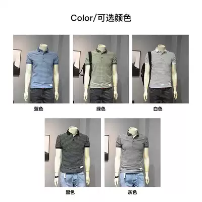 Korean casual fashion stripe short sleeve polo shirt men's 2021 summer new slim Joker handsome lapel T-shirt