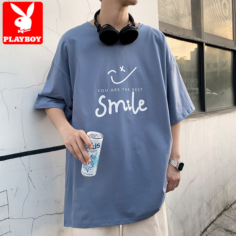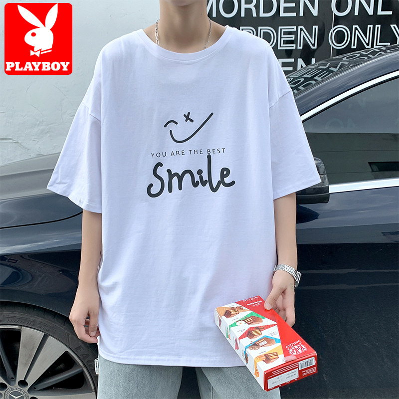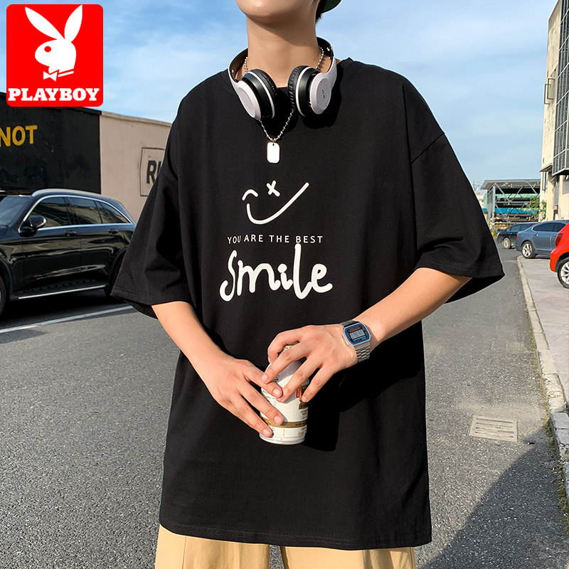 Floral Playboy pure cotton short sleeve T-shirt for men Summer thin Tide Cards Half Sleeve Loose Men's Summer Dress Ice Silk Clothes