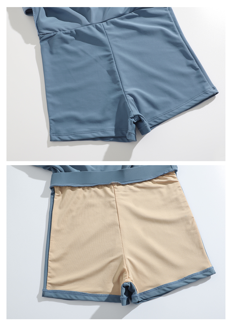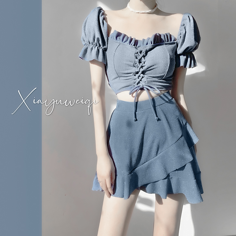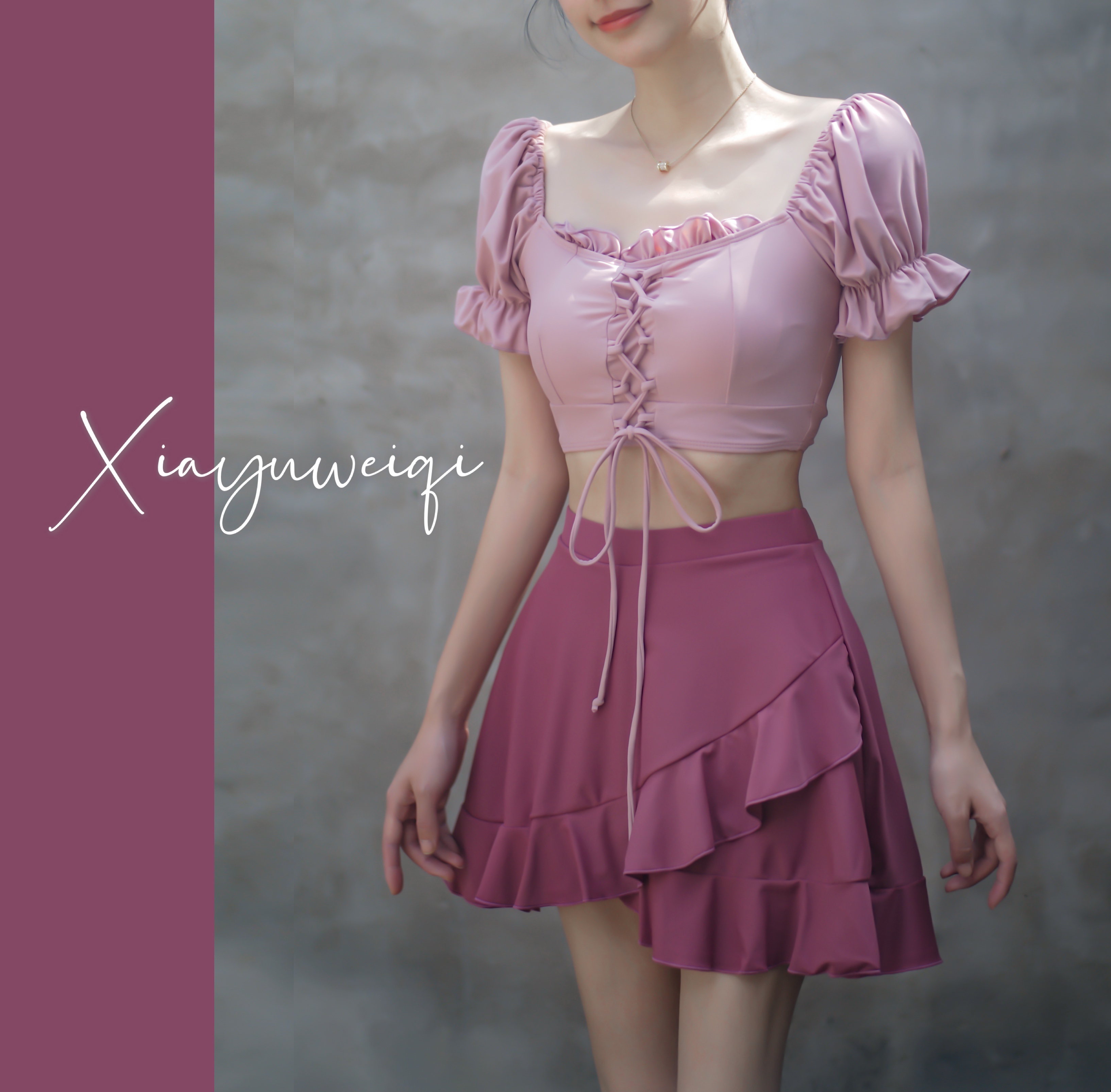 (Xia Yuweiqi) Morandi short-sleeved skirt girl two-piece body-covering thin conservative student swimsuit female