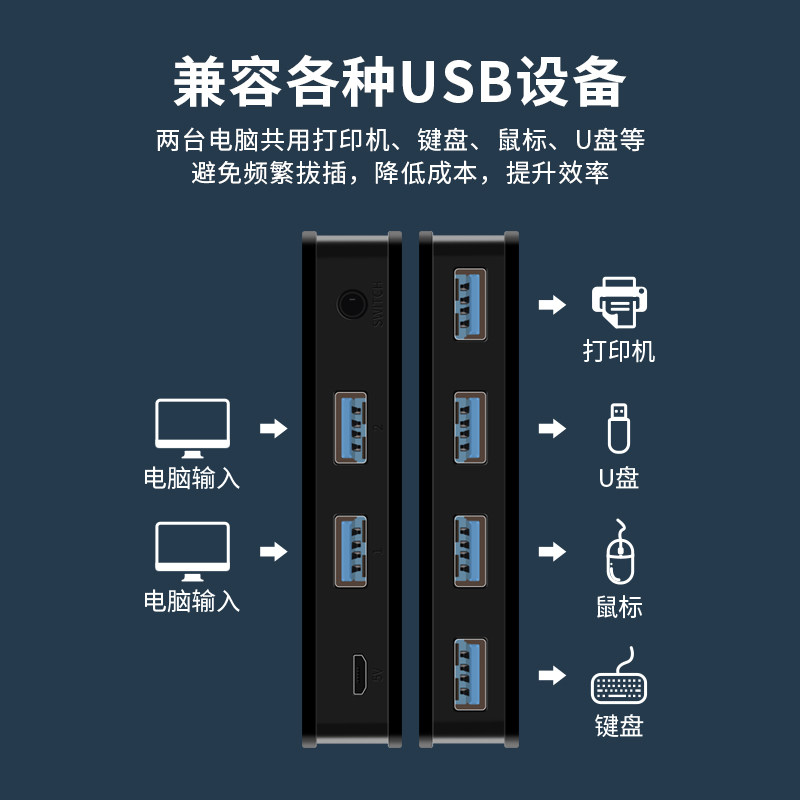 USB3 0 switcher 2 in 4 out one point two computer USB distributor 4 port printer U disk sharer mouse keyboard switcher