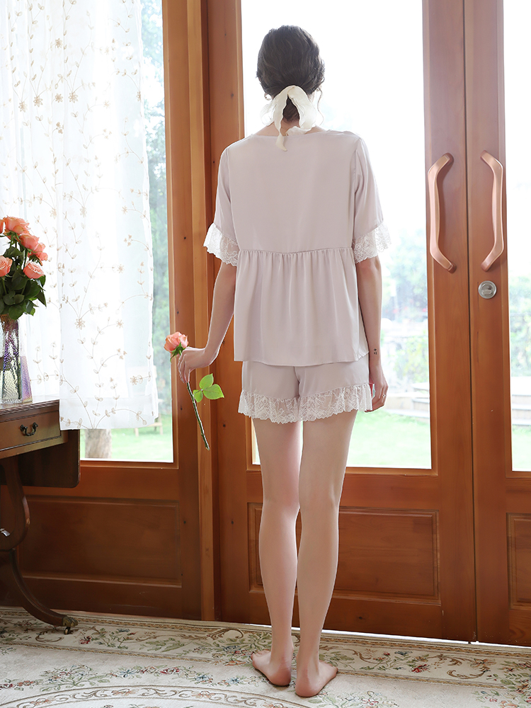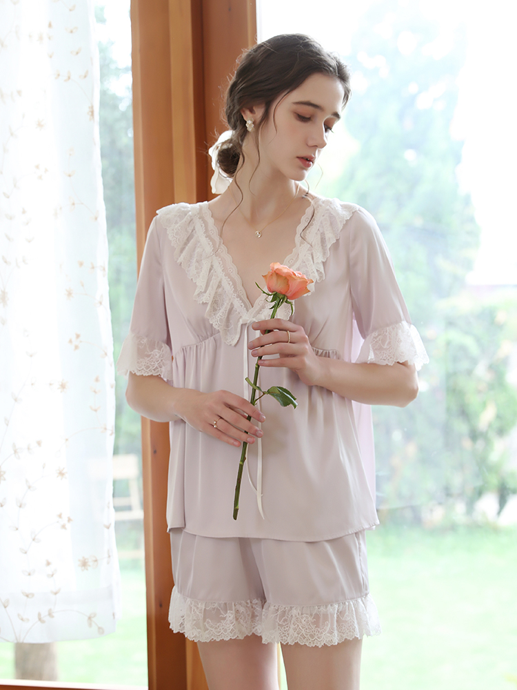 Pajamas Summer Ice Wire Short Sleeve Short Short Package Sweet Cute French Court Festival V Leader Home Clothes