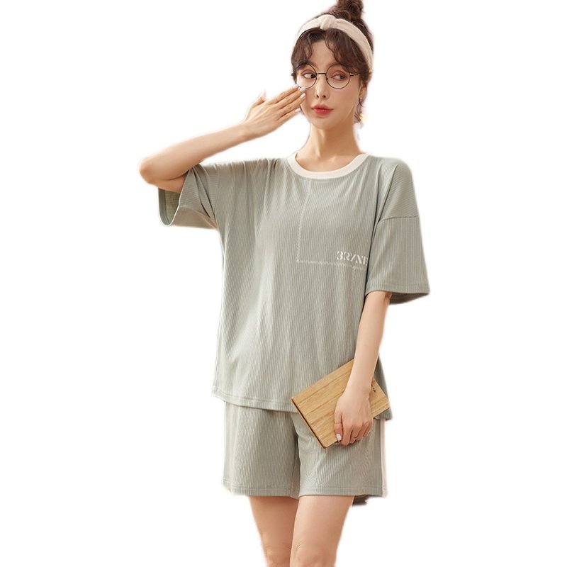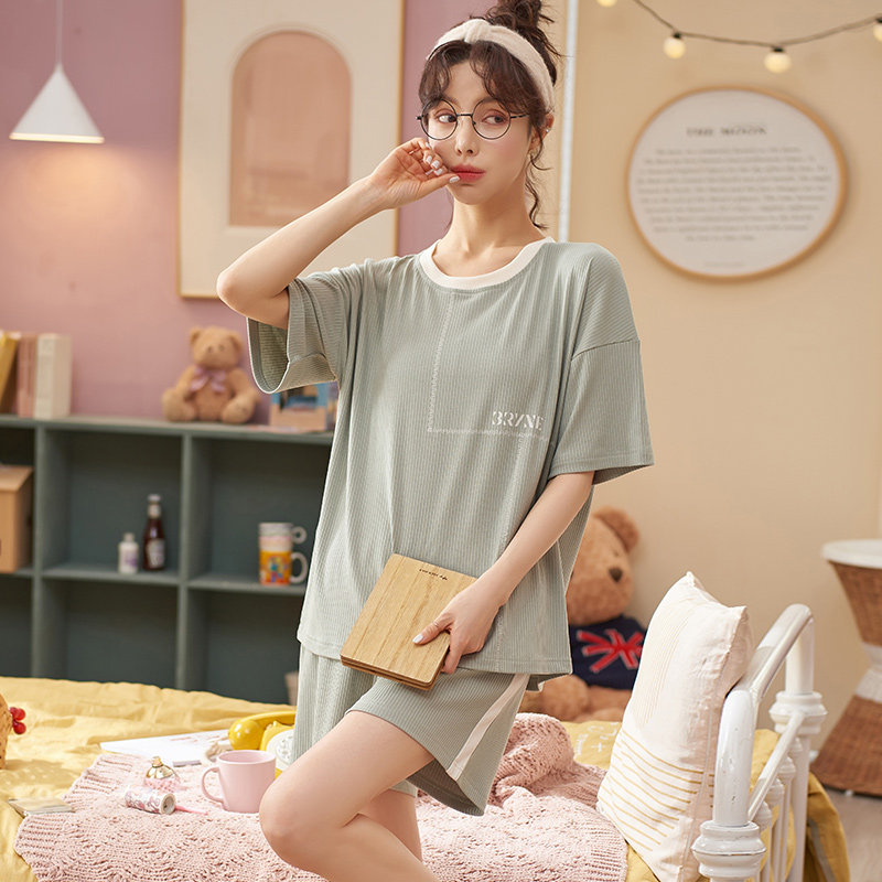 New Frontier Cotton] Pyjamas Female Summer Pure Cotton Short Sleeves Thin Loose Cute Sweet And Beautiful Exterior Wear Round Collar Home Suit Suit
