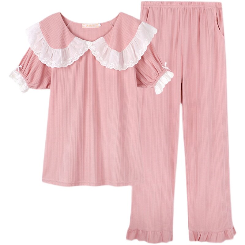 2021 new pajamas women's summer pure cotton short-sleeved thin section cute princess wind spring and summer cotton home wear suit