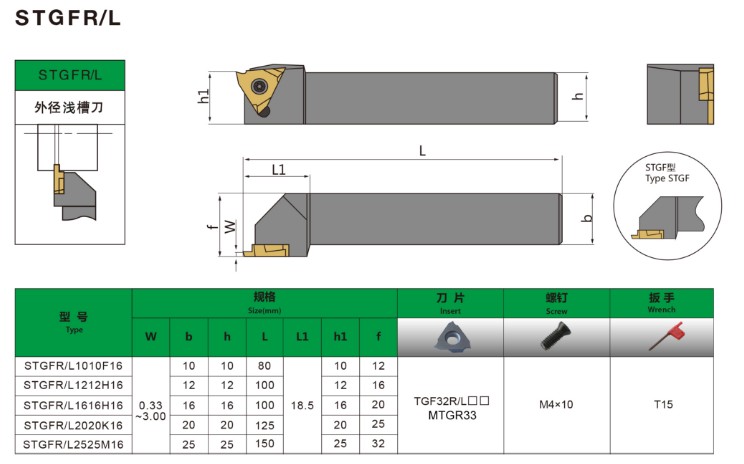 STGFR1212H16 (no pressure plate shallow groove) STGFR1616H16 (no pressure plate shallow groove) STGFR2020K16 (no pressure plate shallow groove) STG