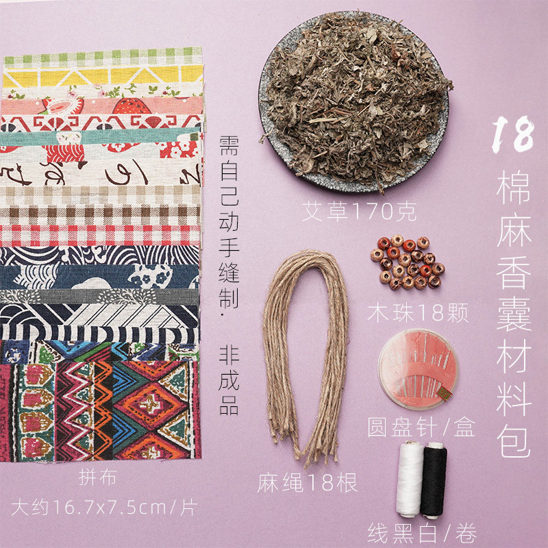 Zhenxin 18 pieces of Dragon Boat Festival glutinous rice sachet material bag diy making triangle bag portable traditional Chinese medicine pendant cotton and linen cloth head