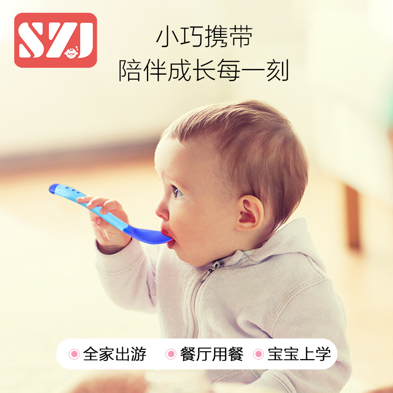 Baby silicone gel soft tablespoon to warm and anti-scalding soft tablespoon newborn baby feeding spoonful cutlery cutlery cutlery children eat sidefood bowl spoonful