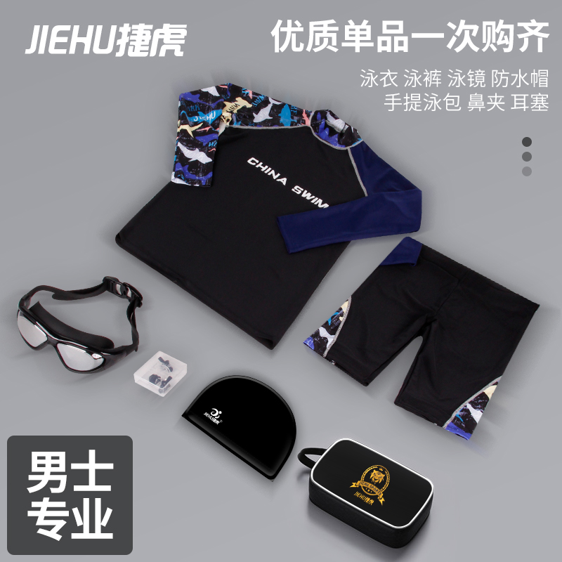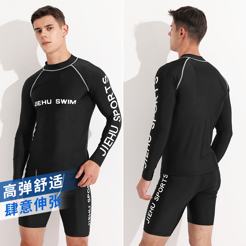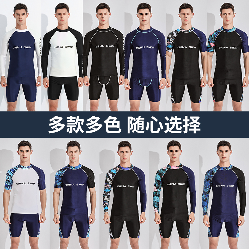 Swimsuit men's summer full body long sleeve sunscreen embarrassment five-point large size swimming trunks quick-drying men's swimsuit set equipment