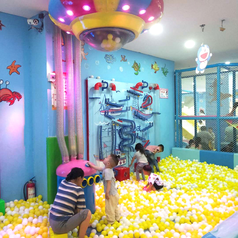 New Ball Falls Indoor Children's Playground Sprinkle Ball Machine Naughty Castle Park 4 Buckets Suction Ball Machine 6 Columns Blow Down The Globe