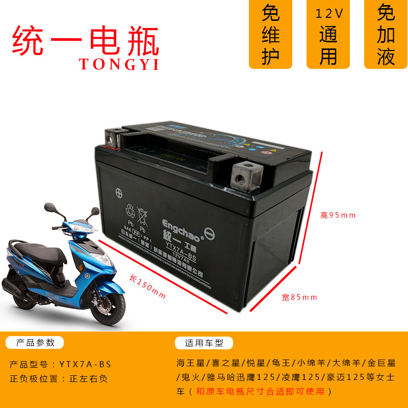 Unified HMU 100 Hyan Jiaxing 125 pedal motorcycle battery YTX7A-BS dry battery 12V7AH universal