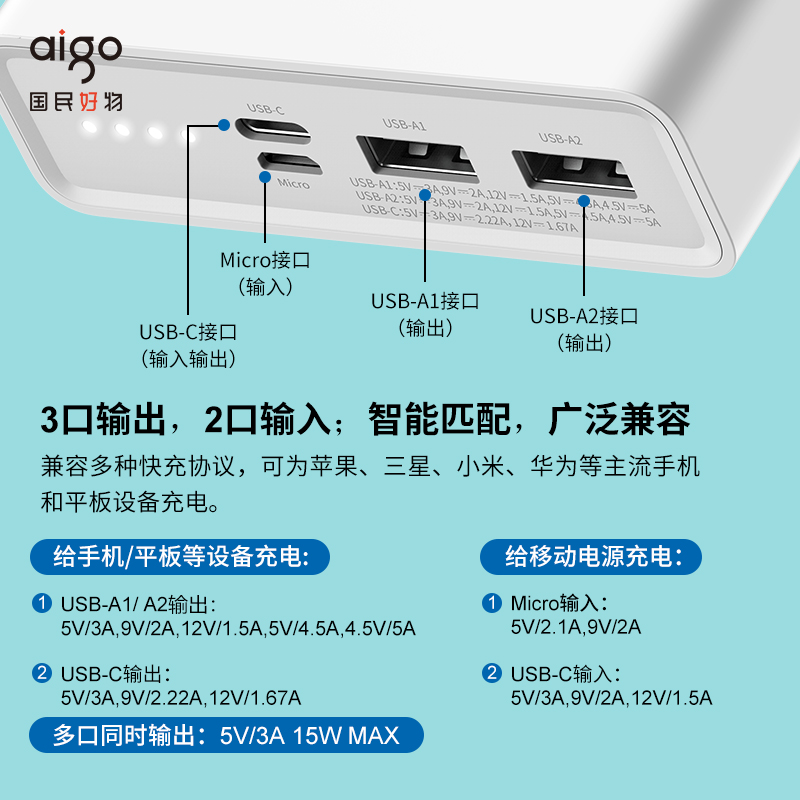 aigo patriots mobile charging 10000 mAh action power supply small portable 22 5WPD bidirectional quick charge official flagship store suitable for all mobile phone support enterprise DIY customization