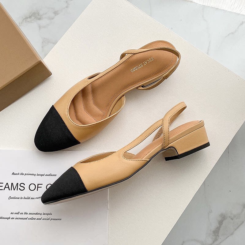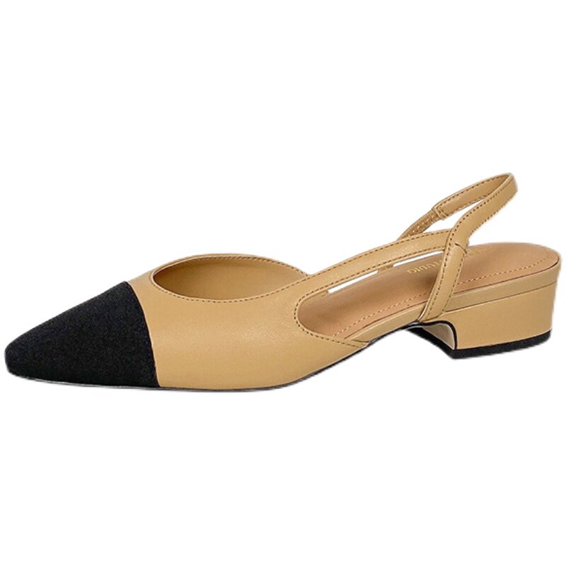 Xiaoxiangfeng sandals women's summer mid-heel 2022 new thick heel pointed toe hollow leather Baotou high-heeled single shoes