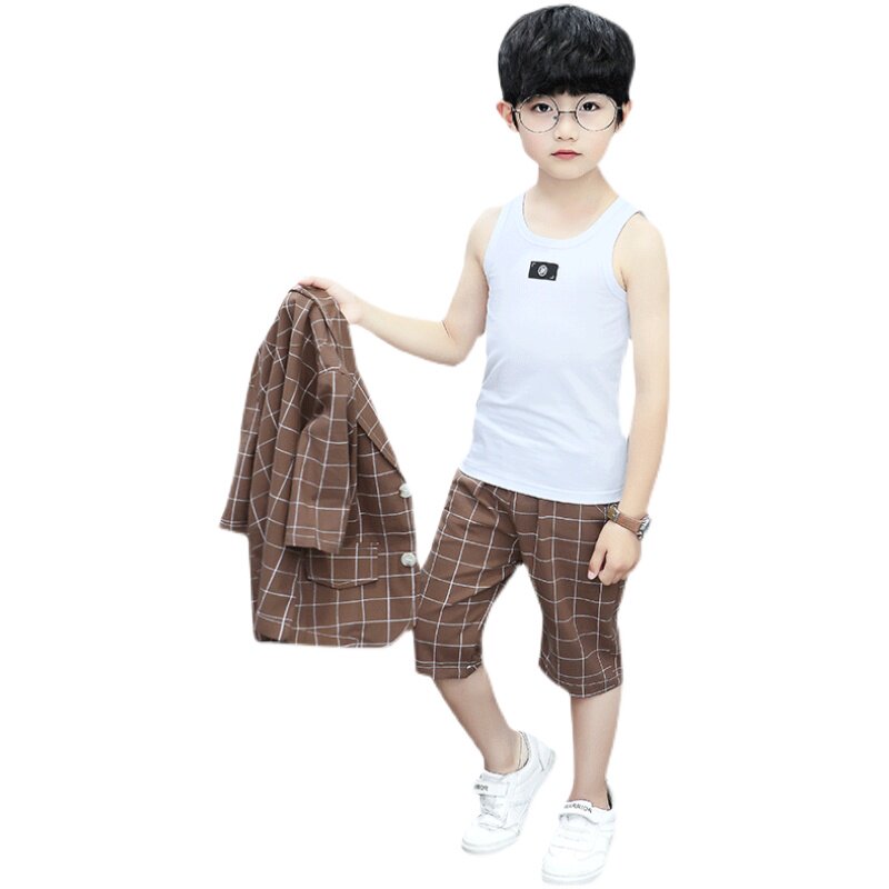 Boys' suit suit three-piece Korean summer suit 2021 summer foreign style handsome summer big boy plaid suit