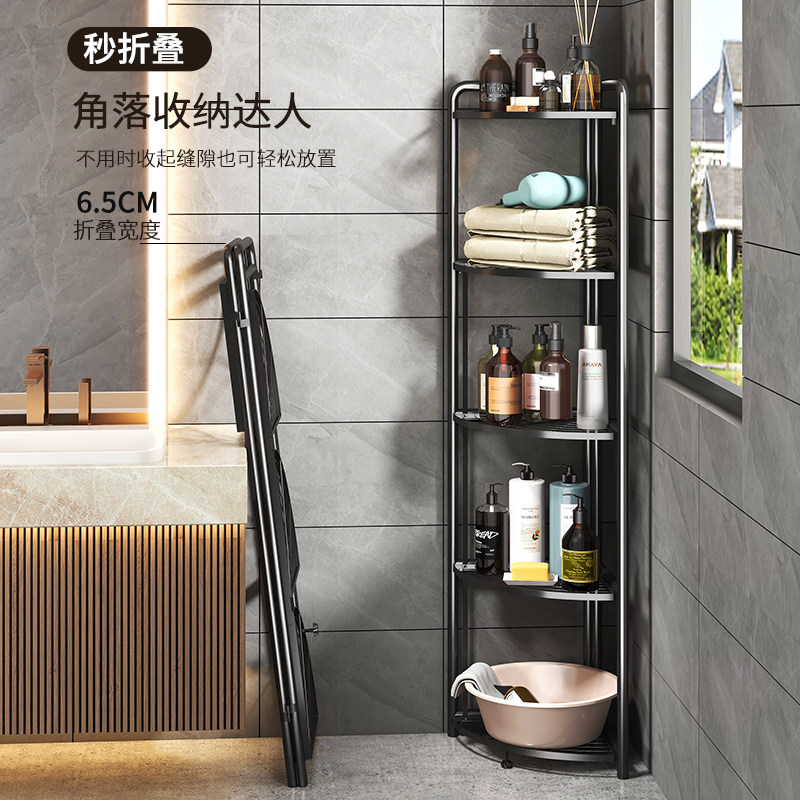 Free-Mounted Folding Kitchen Shelving Kitchen Shelving Bathroom Tripod Floor Type Multilayer Multifunctional Washroom Containing Deck Shelf