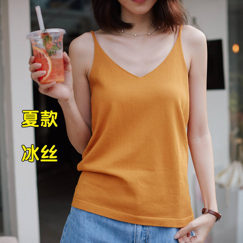 Size large camisole women wear knitted loose belly sexy ice silk sleeveless top fat mm 200 pounds summer