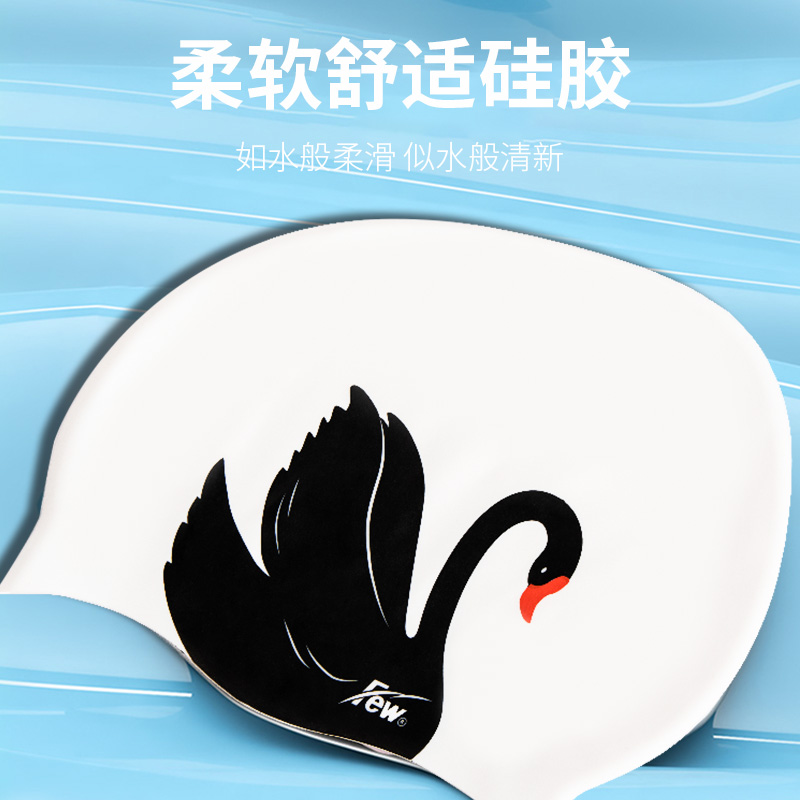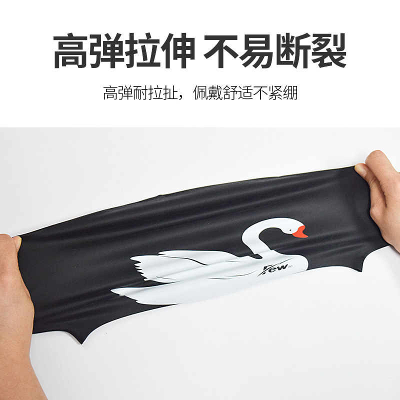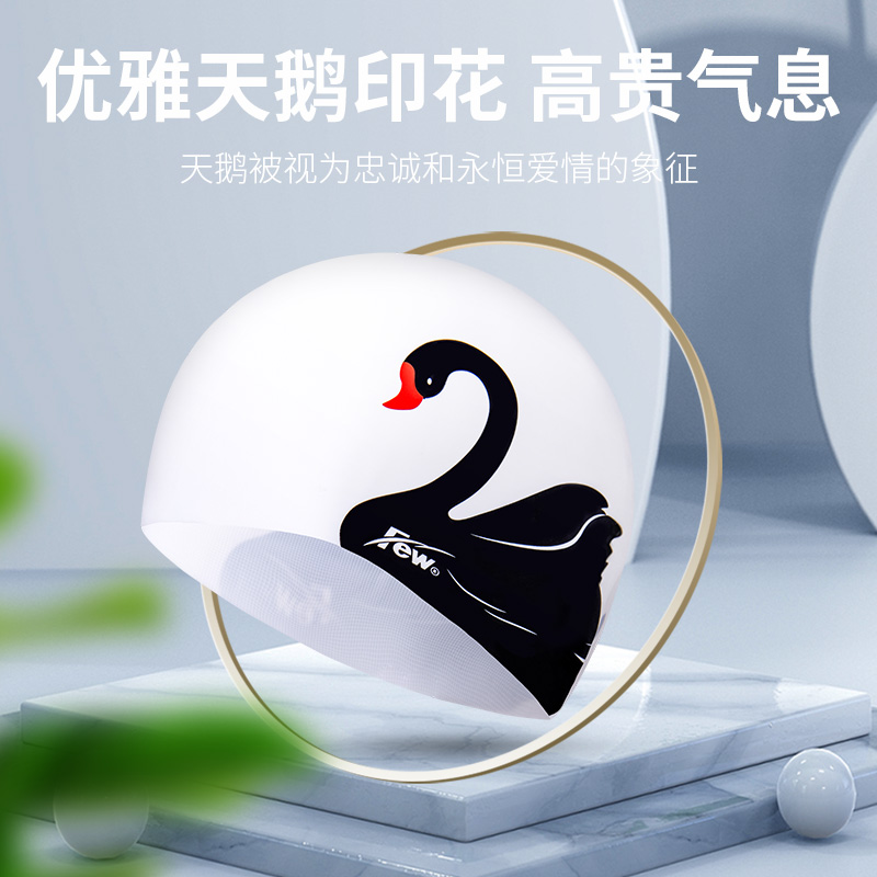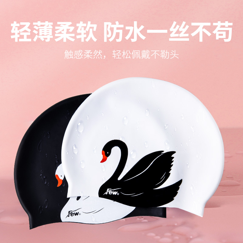 Floating (FEW) Black swan bathing cap ladies long hair waterproof cute fashion adult not ler-head silicone swimming cap