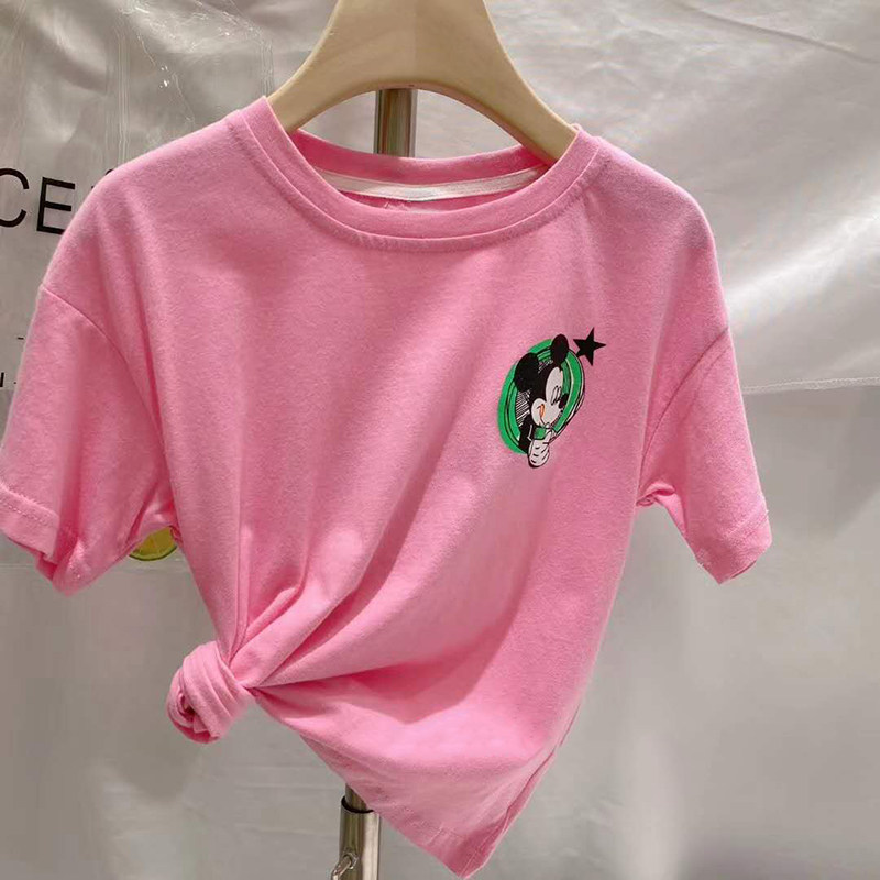 Korean Mitch cartoon printed short sleeve T-shirt child clothing 2022 Summer new CUHK Pure Cotton Pink Blouse