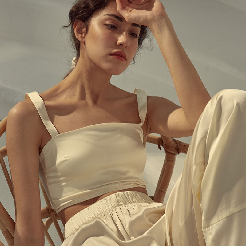 Not JUST Pajama No Bra series true silk bra without steel ring chest cushion sling sleepwear summer underwear-Taobao