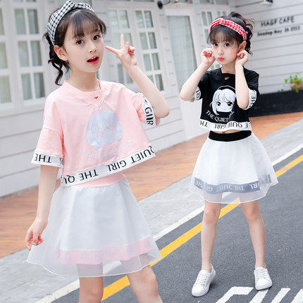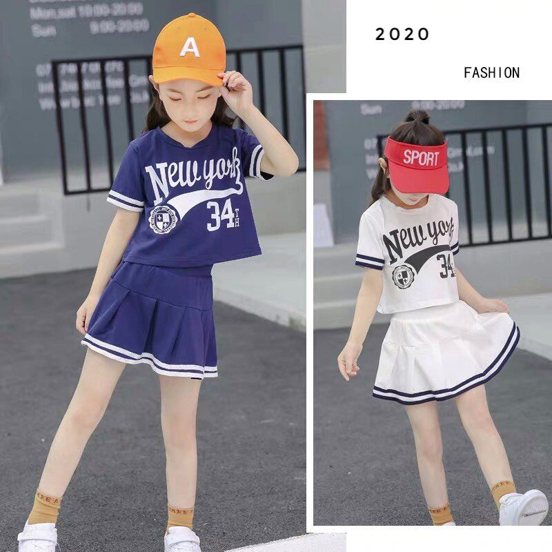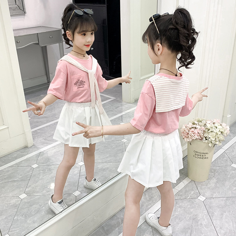 Korean girls summer dress set 2021 new children's clothing girl Summer sportswear two-piece skirt