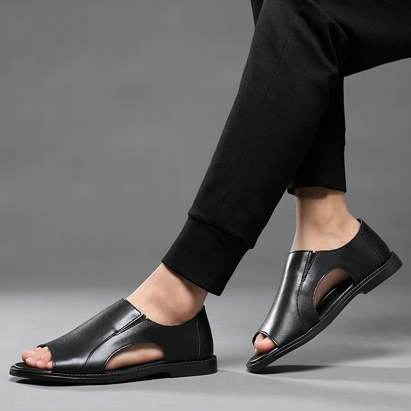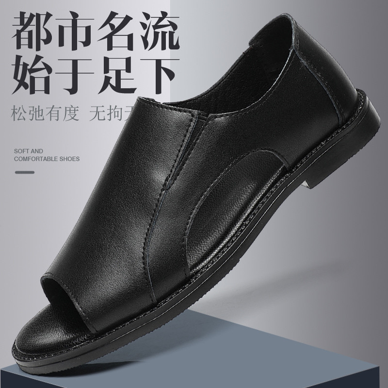 Di Luo Shark 2022 new summer deodorant sandals trend all-match casual comfortable soft bottom leather sandals genuine leather men's shoes