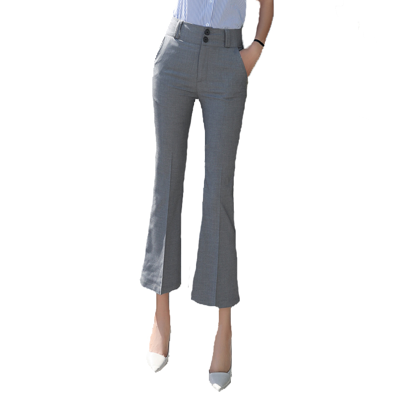 Summer thin microhorn pants girl 2022 new Korean version of slim gray professional OL suit pants high waist nine - waist pants