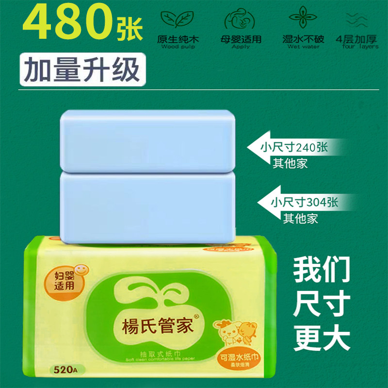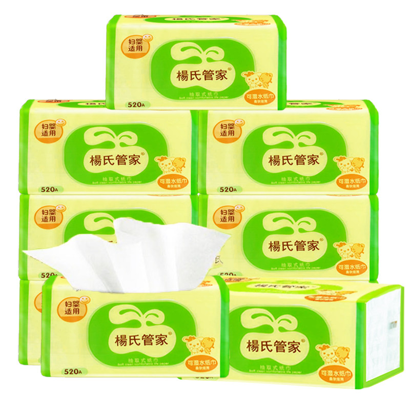 Yang's housekeeper pumping paper full box large bag 520A household large affordable pack wet water 24 packs maternity and infant face towel paper towel