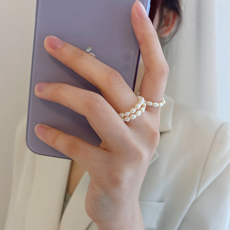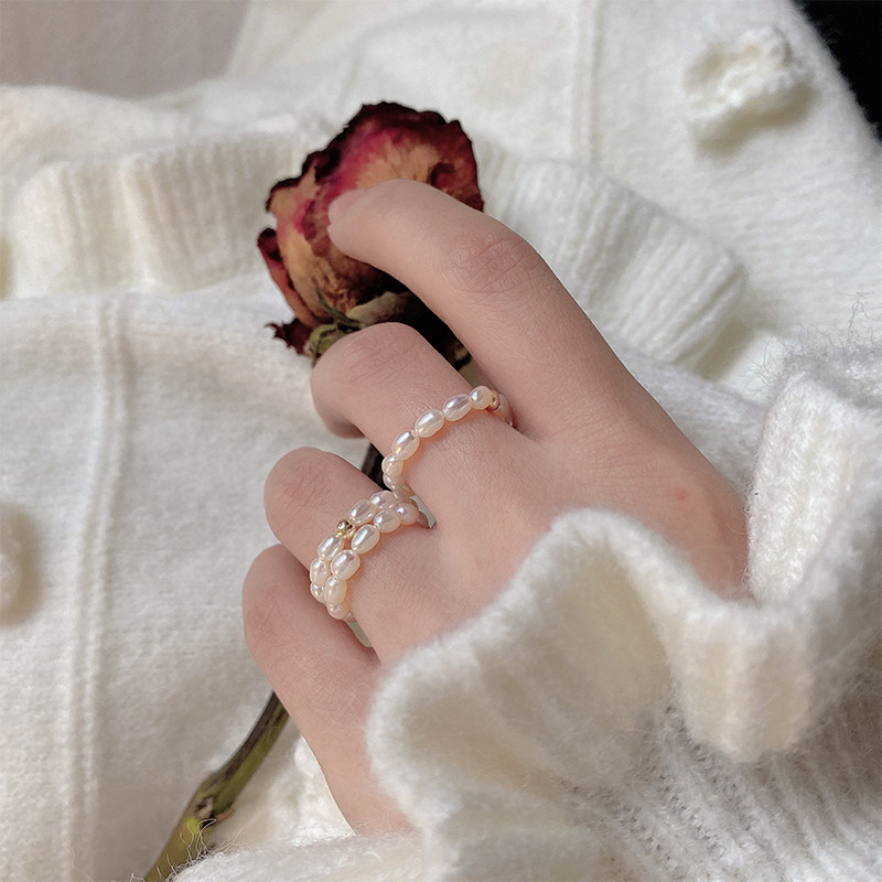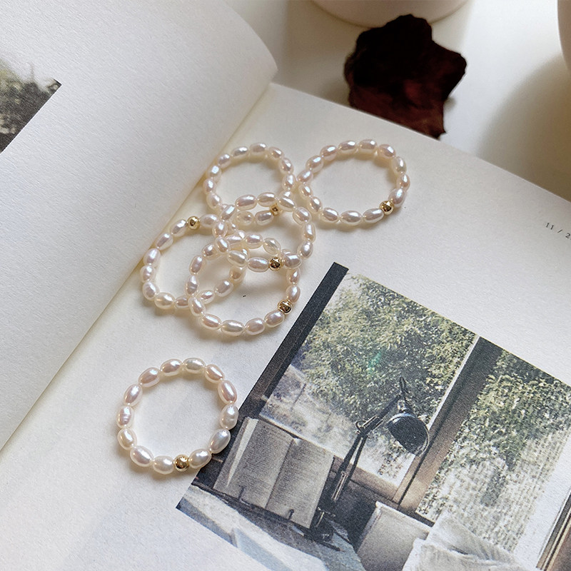 Gentle wind natural pearl ring stacked with strong light American 14k gold index finger ring ring tail ring female