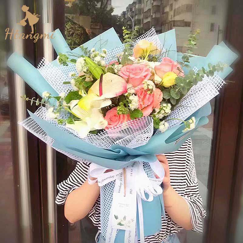 Gagnet flower gauze vegetarian color yarn hard yarn sizing small square grid Korean style bouquet packaging yarn flower art bag flower yarn