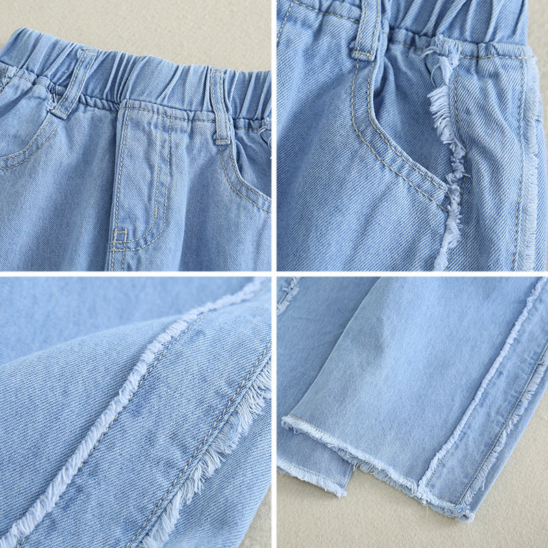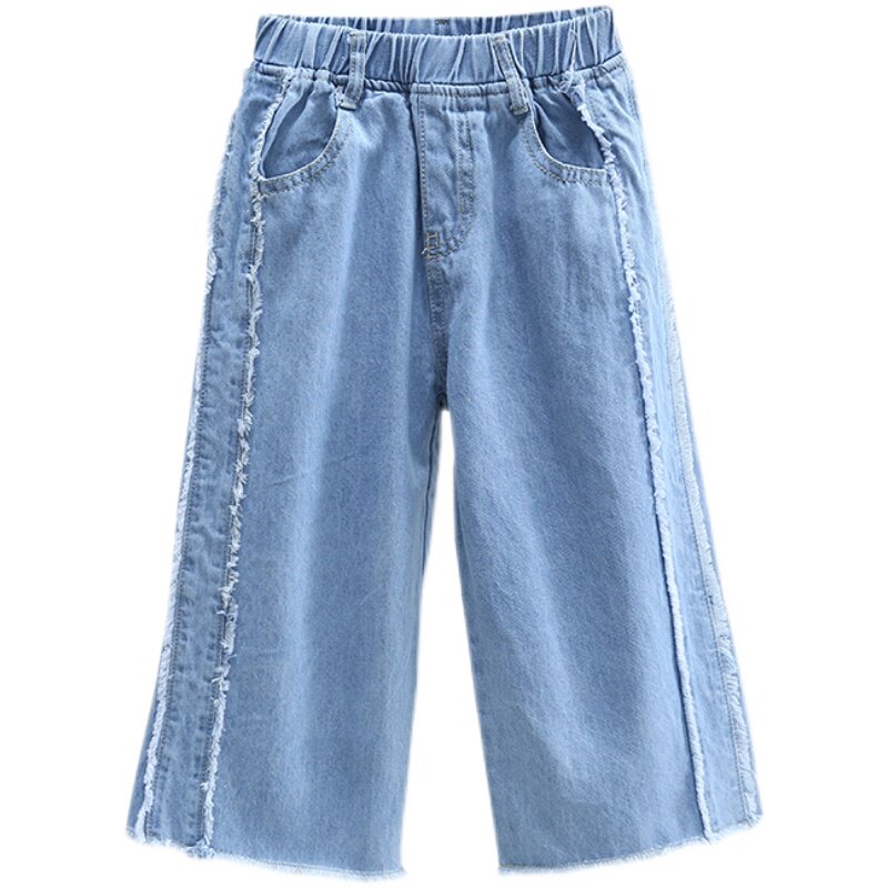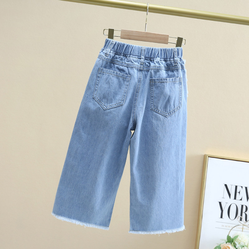 Korean girls' denim shorts 2022 summer new middle-aged children's cropped pants loose children's casual wide pants