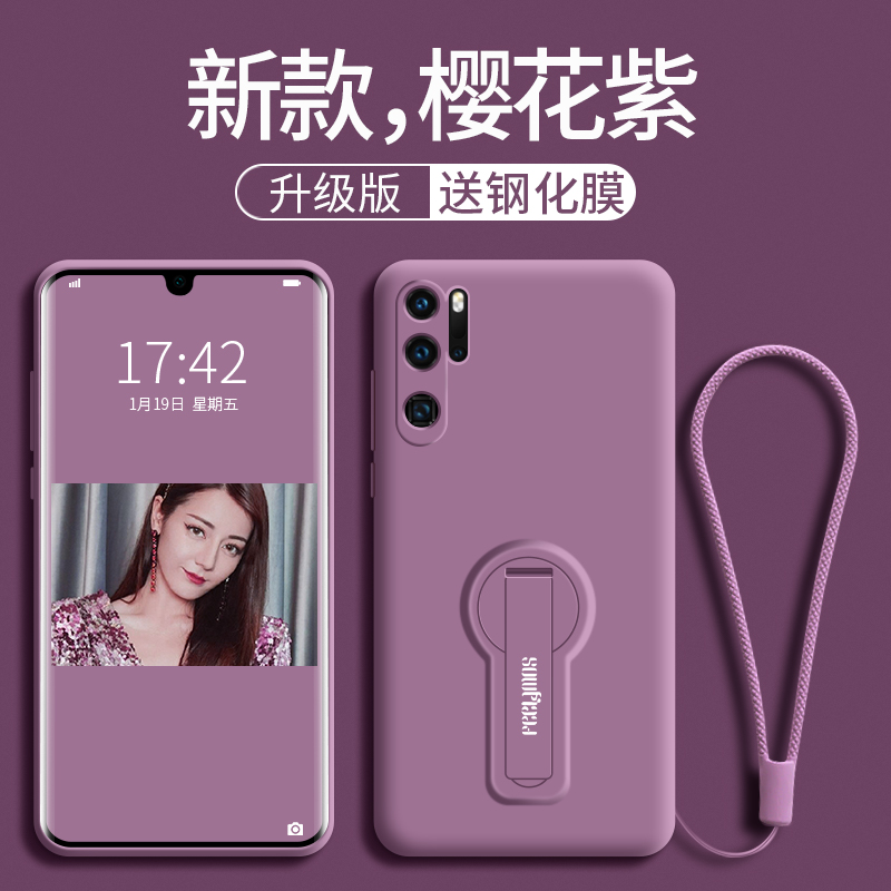 Suitable for Huawei p30 mobile phone protection shell women's liquid silicone p30pro mobile phone protective sleeve anti-fall full bag damp curved surface screen housing net red ins wind creative personality Soft protection ultra-thin frosted with hanging rope
