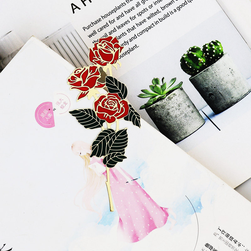 Rose Cute Simple Brass Gilded Bookmark Plant hipster Little Prince School Students Tanabata Valentine's Day