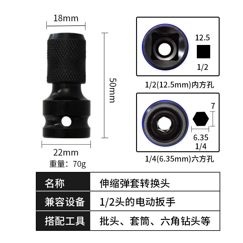 Telescopic sleeve adapter pneumatic wrench electric screwdriver to hexagon shank socket socket socket head converter