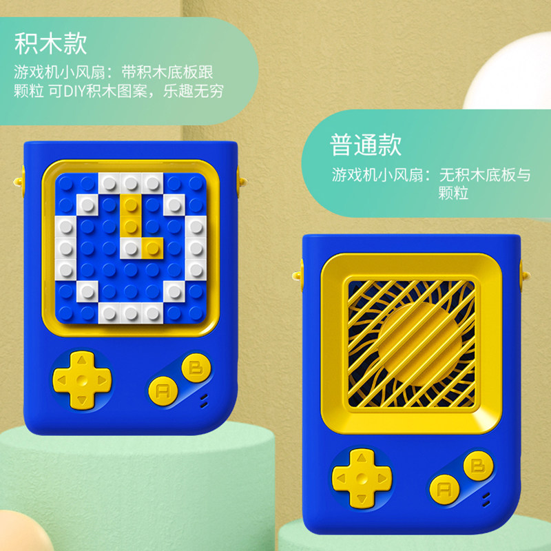 Building blocks hanging neck small fan lazy mute mini portable usb rechargeable red and white game console creative ins wind