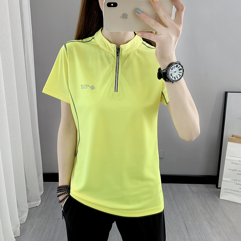 Speed Dry Short Sleeve Suit Women Stand Slim Stretch Quick Dry Jersey Running Ball T-shirt Casual Outdoor Climbing Half Sleeve