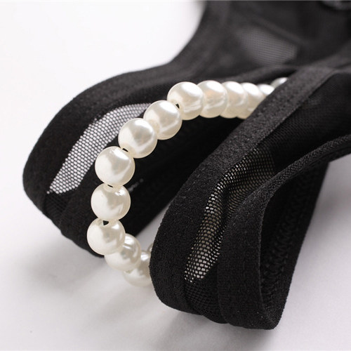 Trousers female hollow lace hot mesh pearl massage fun transparent temptation to underwear lady T pants