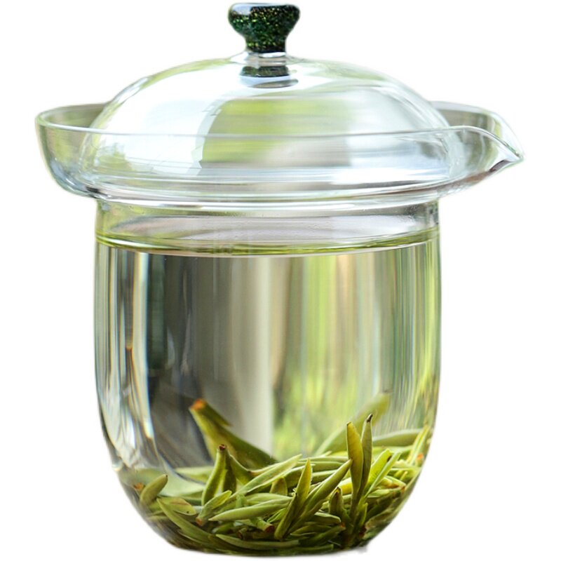 Weaver new product bubble Green Tea Cup Janyi easy bubble cup glass hand grip lid bowl with filter mesh hand grip pot manual heat-resistant