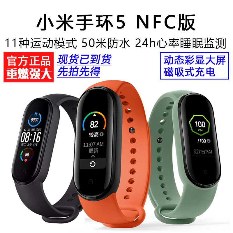Xiaomi Mi Band 5NFC Smart Heart Rate Monitoring Bluetooth Men's and Women's Sports Pedometer Watch Band 4 Upgrade