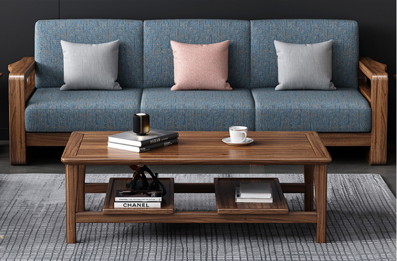 Modern ash wood sofa combination new Chinese minimalist Chinese style small apartment coffee table villa living room complete set of furniture - Taobao