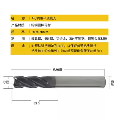 55 degree ultra-fine tungsten steel milling cutter Cemented carbide end milling cutter Flat bottom keyway cutter CNC metal roughing 4 edges