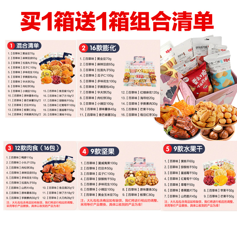 Baicao flavor 16 kinds of puffed free Baicao flavor 9 kinds of nuts(color box-send 2 boxes)