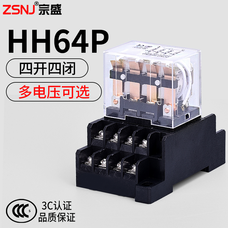 Small electromagnetic intermediate relay HH64P four open four closed LY4NJ AC/DC 12V24V220V with lamp 14 feet