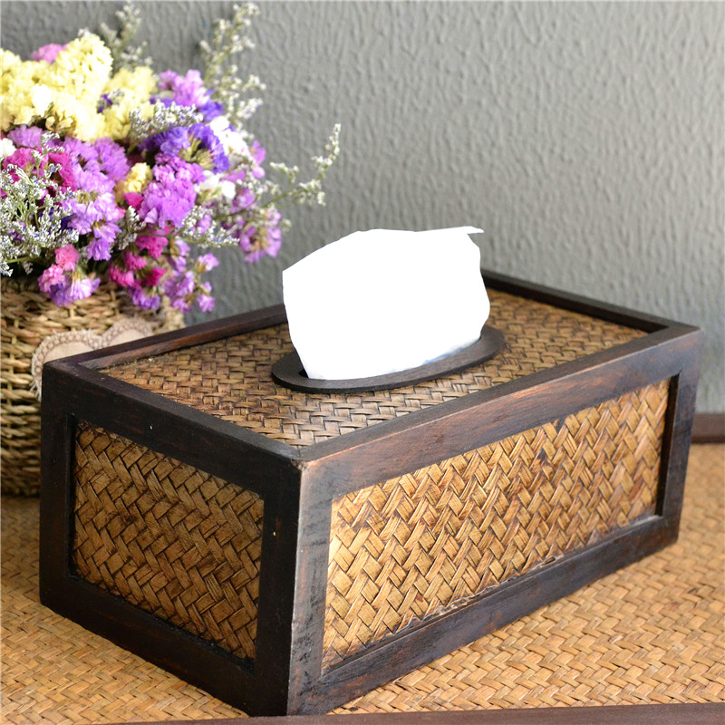 Thailand imported household bamboo woven rectangular large toilet paper box Southeast Asian style and tissue box facial tissue box 150 pumping