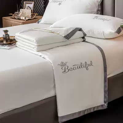 Summer European-style ice silk air conditioning quilt four-piece silky simple solid color summer cool quilt sleeping naked Tencel bed cover quilt cover