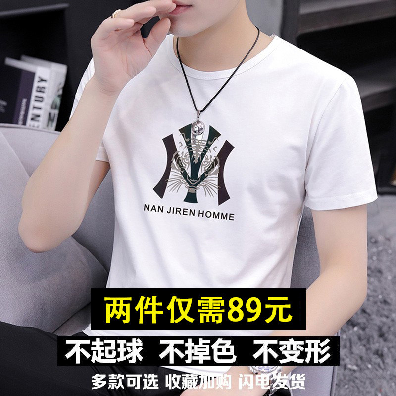 Men's T - shirt short sleeves in the summer of 2021 new white half - sleeved cotton - cotton - tide letter Xinjiang Cotton Cotton Coat