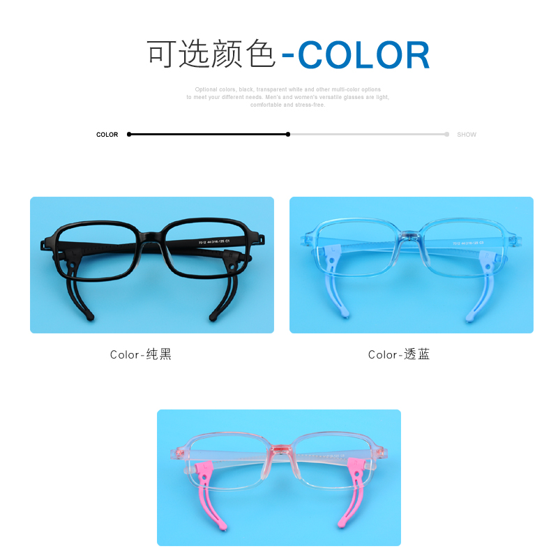 Transparent pink single eyeglass frame (without lens) Black single eyeglass frame (without lens) Transparent blue single eyeglass frame (without lens) Frame (remark color) 0 degree flat anti-blue lens Frame (