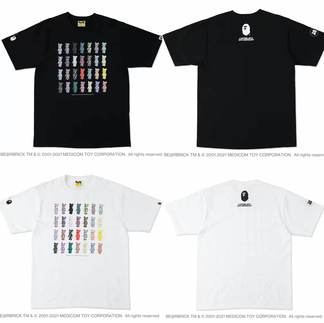 (Domestic Spot) Snow State Sauce Bape men's 28 Anniversary BE@RBRICK Building Bears Joint Short Sleeve T-shirt