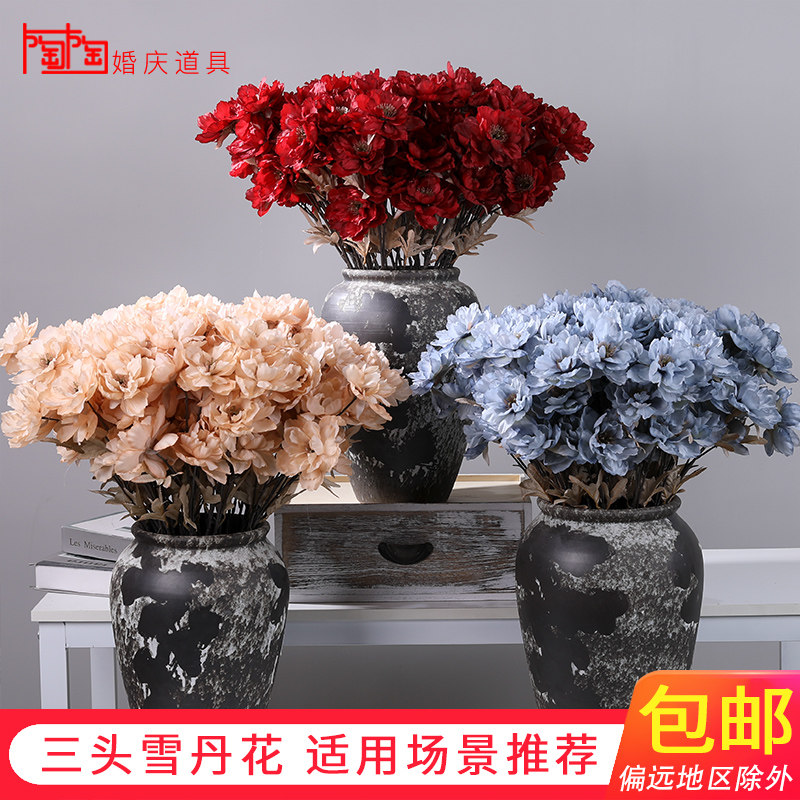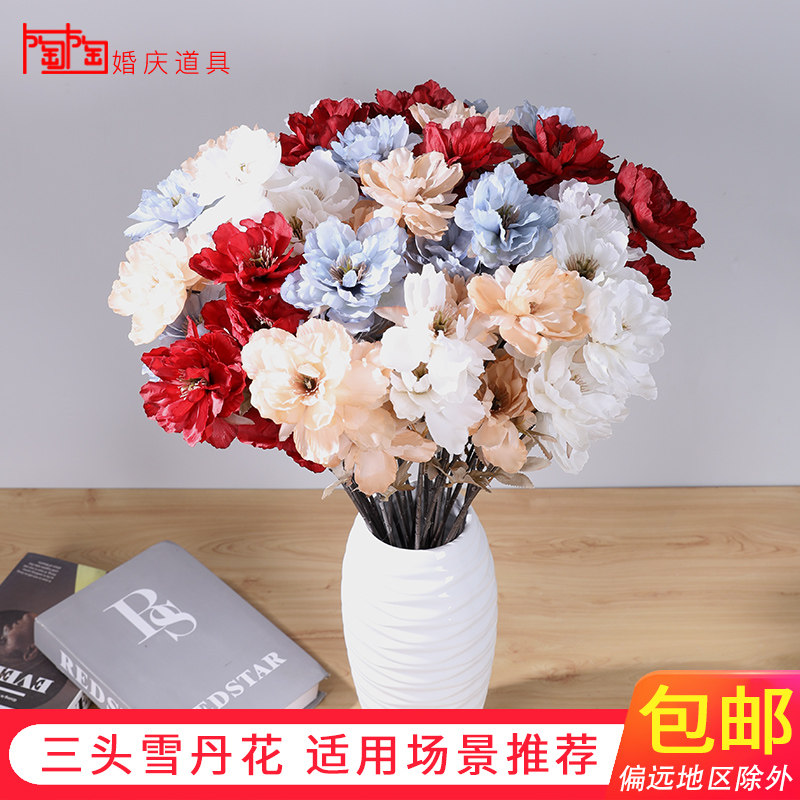 Simulation Three Heads Peony Flowers Wedding Arrangement Decoration Emulation Flower Wedding Hall Flower Arrangement Silk Flowers Flowers Cedon Flowers Fake Flowers